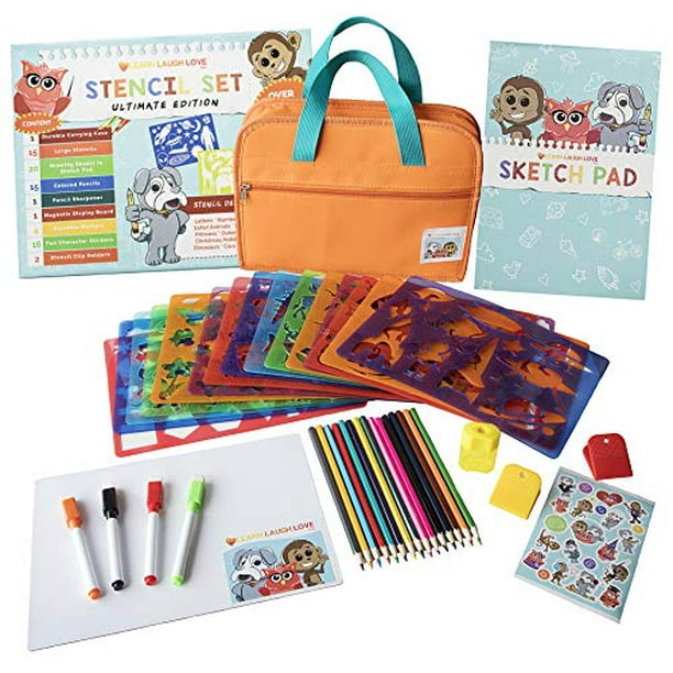 Drawing Stencils Set For Kids Stencils For Kids With 300 Shapes To Spark Creativity Great For Kids Home Activities Includes Carrying Case Colored Pencils Sketch Pad Markers Erase Board Walmart Com